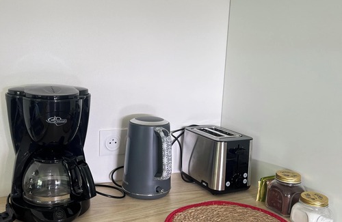 Prepara una comida casera en la cocina, equipada con horno, placa de cocina y frigorífico, además de cafetera y tetera, hervidor eléctrico y microondas. El cuarto de baño incluye toallas, papel higiénico y jabón. Otras comodidades incluyen ropa de cama, aire acondicionado y una mesa de comedor.