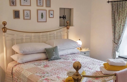 This charming chateau-esque summer house conversion with its stunning rose covered facia in summer, has a fabulous garden with lawned area, gravelled seating area, oriental garden and of course your amazing private hot tub. Inside, the cottage is set all on the ground floor; enter into your open plan living space with its beautiful oak beamed vaulted ceiling, cosy wood burner for the cooler evenings and carefully selected furniture giving a modern yet country vintage feel. The kitchen is fully equipped with everything you need to create a romantic meal or a simple breakfast. The bedroom has a gorgeous iron double bed whilst the en-suite has a large walk-in shower and heated towel rail.