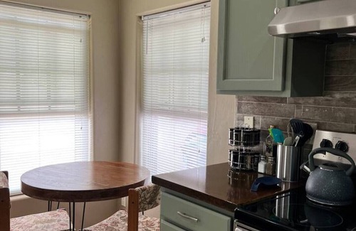 One-bedroom house near the university. Full, stocked kitchen, large living room, washer and dryer. Large fenced yard. Off-street parking. Accessible shower.