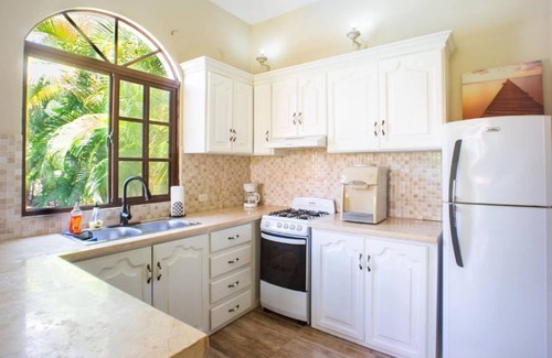 This beautiful family friendly villa has 1-bedroom, 1 bathroom with an open concept living room and kitchen which is perfect for enjoying a relaxing vacation. Perfectly located in a dead-end street which offers privacy and no nearby construction. The bedroom has a king-sized bed and the living room has a pull-out couch to accommodate 2 additional guests.
