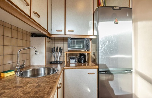 Prepara una comida casera en la cocina, equipada con horno y placa de cocina, además de cafetera y tetera, microondas y utensilios de cocina. Y como hay acceso a una lavandería, no necesitarás llevarte mucho equipaje.