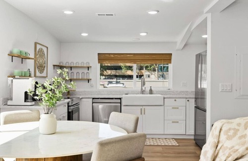 Prepara una comida casera en la cocina, equipada con horno, placa de cocina y frigorífico, además de cafetera y tetera, máquina de hielo y microondas. Disfruta del wifi gratis y de la televisión. El cuarto de baño incluye un secador de pelo y toallas. Y gracias a la lavadora y la secadora, podrás viajar con poco equipaje. Otras comodidades de este alojamiento de 3 dormitorios y 2 baños incluyen ropa de cama, una tabla de planchar, aire acondicionado y calefacción.