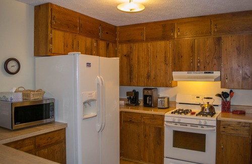 Esta acogedora casa de planta baja duerme 8 camas con opciones adicionales de la sala de estar y porche (este último en los meses cálidos o para los osos polares en su grupo). Hay un MBR w / Queen; BR # 2 w / Queen, BR # 3 w / dos juegos de literas gemelas, livingroom w / Queen sofá desplegable, y (sin calefacción) Sun Porche w / a queen bed.
