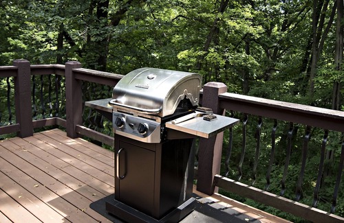 Redtail Retreat: esta encantadora casa de 2500 pies cuadrados con tres habitaciones, escondida en los árboles del Territorio de Galena, es un excelente lugar para retirarse. La puerta principal se abre a una sala de reunión conversacional con muchos asientos. Adyacente a la sala de reunión se encuentra el área de la cocina espaciosa, que está separada del área de comedor para 8 personas por un mostrador con banquetas que permite a los cocineros conversar con los de la mesa. El porche cubierto se encuentra justo al lado de la cocina, así como la cubierta exterior que está equipada con una parrilla de barbacoa de gas. La planta principal tiene el dormitorio principal con baño principal adjunto. Esta habitación tiene una cama king size con TV de pantalla plana vía satélite, el baño contiguo tiene una cabina de ducha, dos lavabos y jacuzzi. En la planta baja, en el nivel inferior, hay dos dormitorios y una Sala de Reuniones / Medios. El primer dormitorio tiene una cama Queen Size con un baño adjunto (cabina de ducha con asiento). El segundo dormitorio, con una TV satelital apantallada plana montada en la pared, tiene una cama King Size con un baño adjunto (combinación de bañera / ducha) que se comparte con la sala de medios / reunión de abajo. Esta sala de reunión / multimedia en la planta baja tiene un sofá seccional con sillón, televisión satelital de pantalla plana (DVD), chimenea de gas que se enciende con un interruptor y una barra para tragos. En el exterior, en el nivel inferior, se encuentra la cubierta con asientos envolventes y una bañera de hidromasaje con capacidad para 6 personas.