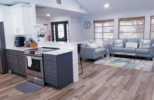 Este alojamiento de 4 dormitorios y 3 baños cuenta con una sala de estar, un comedor, chimenea y aire acondicionado. Además, dispone de una bañera de hidromasaje, junto con toallas, jabón y papel higiénico. La cocina está equipada con horno, placa de cocina y frigorífico, además de cafetera y tetera, olla para cocinar langostas y microondas. Y gracias a la lavadora y la secadora, podrás viajar con poco equipaje.