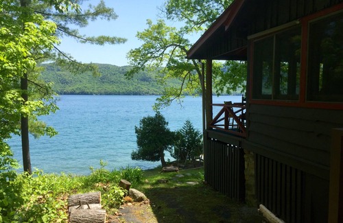 "Fernwood" es una casa de piedra y troncos Adirondack clásica de 4 dormitorios y 2 baños bien mantenida en el lago con todo lo que necesita para una estancia relajante con familiares y amigos. El piso principal tiene un kit de cocina, un porche de comedor rodeado de vistas al lago, sala de estar / comedor con piedra clásica y techo de catedral. Lower lvl living rm tiene grandes vistas y acceso al soleado patio de pizarra con sillas Adirondack, perfecto para leer o escribir esa gran novela estadounidense. Capacidad para 6 adultos y 4 niños. 1er piso tiene un baño completo, 4 literas rm, 1 cama queen en brdm con orientación sur. El segundo piso tiene baño con ducha, cama queen rm, y la principal con cama queen con marco personalizado y techo de la catedral y ventanas con vista al lago. Afuera hay un césped inclinado hacia el agua, con un área nivelada para tomar el sol, un muelle para <24 'bote, flotador, 2 kayaks, canoas, garaje separado, bonitos jardines, hamacas, parrilla a gas, chimenea al aire libre, y por supuesto Esa increíble vista.