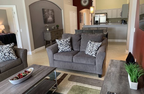 Con una piscina climatizada y una sala de juegos privada, puede pasar todas sus vacaciones en casa si lo desea. Esta casa está ubicada en una comunidad tranquila y cerrada con cuatro lagos de pesca y un patio central para que los niños corran. Visite el lugar más mágico de la Tierra, pasee por el centro de Orlando o juegue en los mejores campos de golf, todo a una corta distancia en automóvil desde su hogar.