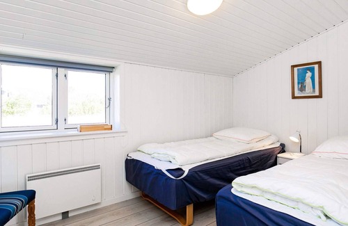 Layout: cocina abierta(fogón(eléctrico), campana extractora, cafetera, microondas, lavavajillas, nevera con congelador ), salón-dormitorio(TV(cable, canales de televisión alemanes, canales de TV daneses)), dormitorio(2x cama individual), dormitorio(2x cama individual), dormitorio(2x cama individual), dormitorio(2x cama individual), dormitorio(2x cama individual), cuarto de baño(secadora, bañera o ducha, lavabo, váter, lavadora), cuarto de baño(bañera o ducha, lavabo, váter), terraza, barbacoa, bomba de calor aire-aire