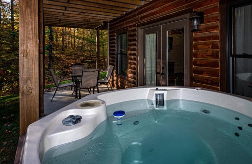 Relájate en la bañera de hidromasaje o tómate algo en el porche o patio de esta cabaña. Para cambiar un poco, entra y disfruta del wifi, de la televisión por satélite o cable y del reproductor de DVD.