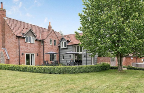 . Esta espléndida propiedad de vacaciones independiente es una que seguramente adorará. Se ha convertido con un toque contemporáneo para ofrecer vistas espectaculares de los alrededores rurales, diseñado y amueblado para huéspedes exigentes que cuentan con un gran jardín de césped cerrado que conduce a prados con estanques y lago. Las puertas electrónicas privadas con un largo recorrido conducen a la propiedad a través de la pradera con vacas y caballos pastando. El amplio alojamiento ofrece una sala de estar con estufa de leña. Se dice que la cocina es el corazón del hogar, esto es muy cierto para esta casa, perfecta para celebraciones familiares y oportunidades para cenar juntos, la espaciosa cocina / comedor contemporáneo bien equipado cuenta con mucha luz y se abre al gran patio con bañera de hidromasaje privada de 6 plazas y jardines cerrados con césped. Hay una habitación convenientemente en la planta baja, y los muebles de alta calidad continúan hasta el primer piso con cuatro habitaciones más; Se completa con un magnífico dormitorio principal espacioso con balcón propio con zona de estar, vestidor y baño.