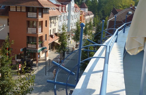 3 habitaciones terraza en la azotea apt. en el centro de Heviz, m. Clima y Internet.