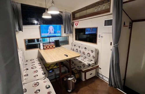 Relájate en el porche o patio y disfruta de servicios como los muebles de exterior, o tómate algo en el brasero de jardín de esta casa barco.En cuanto al interior, entra y disfruta del wifi gratis, de la televisión, del reproductor estéreo, de los videojuegos y del reproductor de DVD.