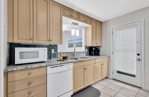 ✓ Kitchen with microwave, coffee maker, stove, dishwasher, and refrigerator