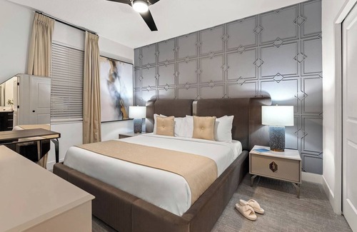 Cerca de esta casa de vacaciones para familias podrás disfrutar de la natación y de parques temáticos, entre muchas otras cosas. Al disponer de un aparcamiento en las instalaciones, podrás olvidarte de tu vehículo y salir a pasear. Estarás a 12min a pie de Parque de atracciones Fun Spot America y a 8min a pie de Orlando Outlet Marketplace.