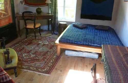 - 1 sala de estar con chimenea, TV, reproductor de DVD, wifi, con vistas al jardín..