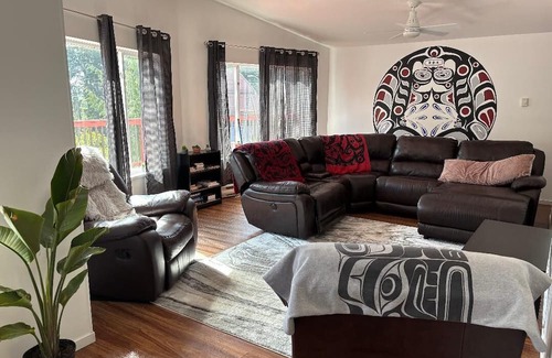 We are thrilled to welcome you to our home on the Namgis First Nation territory in Alert Bay. The space is private, pet friendly, and perfect for anyone on vacation or here for work/business.The home is very spacious and beautifully decorated with original First Nations artwork designed by your host, Donald Ozzie Wadhams, a proud Kwakwa̱ka̱ʼwakw artist.