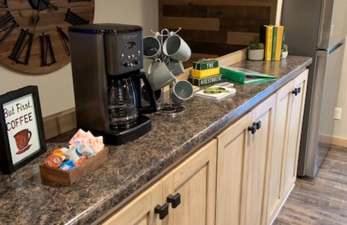 La nueva cocina personalizada está bien equipada. Cuenta con nuevos gabinetes de arce, nuevas encimeras y electrodomésticos. Los electrodomésticos incluyen una estufa, microondas, lavaplatos y un refrigerador con máquina de hielo. También en la cocina hay una cafetera de 12 tazas, olla eléctrica, licuadora y tostadora. La cocina ofrece una isla central con capacidad para 6 personas y hay una mesa adicional en el vestíbulo delantero con capacidad para 2.
