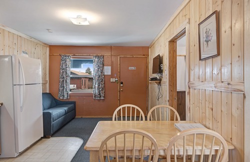 Notas sobre el estacionamiento: estacione a la izquierda de la puerta y no bloquee la unidad principal. Hay un estacionamiento adicional alrededor del área (entre los edificios del Lodge 1-5 y la línea de piedra cerca de la glorieta con el jacuzzi, enfrente de la tienda, al lado de la oficina, a lo largo de la parte posterior de Elk Cabin hacia el contenedor de basura, detrás del cobertizo norte de Moose Lodge, y al este de Fox Cabin). También hay un amplio estacionamiento de restaurante vac��o. Úsalo solo al sur de la oficina y de los edificios del Lodge 1-5.