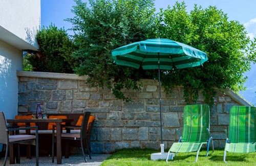 Extras especiales: calefacción por suelo radiante, césped pequeño con muebles de jardín, acceso a internet.