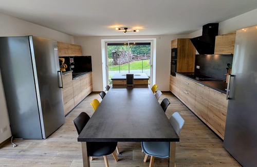 En el corazón de los Vosgos del Sur y la Meseta de los Mil Étangs, conocida como la "Pequeña Finlandia", la casa rural se beneficia de un entorno natural único compuesto por bosques, estanques y colinas. Ofrece numerosas posibilidades de paseos, a pie o en bicicleta, con senderos señalizados y accesibles para todos. Los miradores del Ballon de Servance o el pueblo de Belfahy ofrecen magníficas vistas panorámicas, mientras que eventos locales, como el festival "Mille Pas aux 1000 Étangs", animan la temporada de verano. Un entorno ideal para combinar relajación y descubrimiento. La casa rural Les Marguerites, una casa rural renovada de 280 m², ofrece comodidad y un ambiente acogedor con capacidad para 14 personas. Ideal para estancias en familia o con amigos, cuenta con un amplio comedor con una gran mesa, un acogedor salón con sofás y una cocina totalmente equipada. La planta baja también ofrece un dormitorio con cuatro camas individuales, un lavadero y un baño con ducha a ras de suelo. En la planta superior, tres dormitorios con camas dobles y un dormitorio con cuatro camas individuales ofrecen una distribución armoniosa de las camas. Tres baños, uno de ellos con bañera, y varios aseos completan el conjunto. Un entrepiso convertido en biblioteca ofrece una zona de relax adicional. En el exterior, una terraza con vistas a una amplia zona verde invita a la convivencia y a los juegos al aire libre. Con un paquete todo incluido (limpieza, ropa de cama y suministros incluidos), la casa rural está abierta todo el año y garantiza una estancia sin preocupaciones en un entorno auténtico y tranquilo.