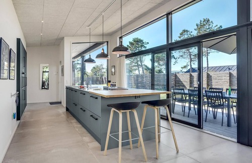 Disfrute de unas vacaciones de ensueño en esta espaciosa y bien equipada casa de vacaciones, donde se sentirá como en casa con toda la familia. Siéntase como en casa y aproveche el salón abierto, que le invita a pasar horas acogedoras y relajantes. La atractiva y elegante cocina es el lugar ideal para preparar deliciosas comidas por la noche con vistas al jardín. Salga a la terraza por la mañana y disfrute de un café recién hecho. Aquí también encontrará un lugar agradable para disfrutar de las comidas de vacaciones al aire libre cuando hace buen tiempo. Disfrute de acogedoras barbacoas al aire libre. Por la noche, también podrá relajarse en las tumbonas o junto a la hoguera. Después de un divertido día jugando en el jardín y en el trampolín, puede asar pan de palo y asar marshmellows con sus hijos.