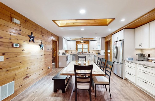 En las noches frías, caliéntese junto a la estufa de leña, luego diríjase a la cocina totalmente equipada para disfrutar de una comida casera caliente. ¡Relájese por la noche con una noche de cine en los cómodos sofás de la sala de estar, luego diríjase a una noche de sueño reparador rodeado de bosques tranquilos!
