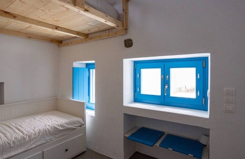 Traditional house built in 1880, restored, preserving its traditional Cycladic character. Made with natural materials of the season, such as stone, soil, reeds and seaweed. Located at the center of the island close to old castle of Hora. With an amazing view of the aegean, Live like a local !!