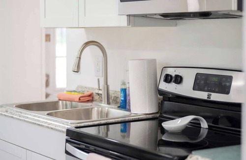 This 2BR/1BA stay is just 6 minutes from downtown and ideal for up to 6 guests. Sleep comfortable in king beds, plus a queen memory foam pull-out. Enjoy a full kitchen, 50” smart TV, fast Wi-Fi, and a sleek walk-in shower.