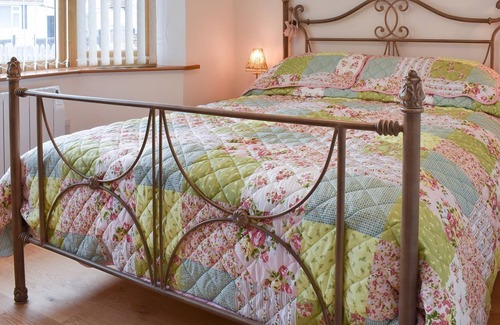 Abra las puertas francesas y disfrute de relajantes tardes en el jardín de esta casa de vacaciones independiente, ubicada a solo 300 metros de la playa. Todo en la planta baja.