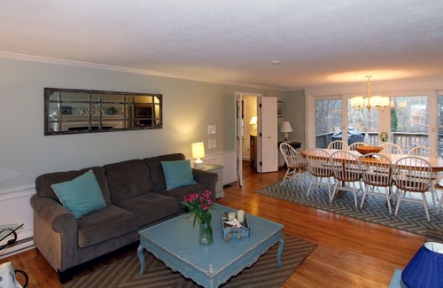 Renovar con buen gusto la casa estilo Cape en un encantador barrio residencial. La propiedad incluye cuatro dormitorios y tres baños completos. El nivel inferior cuenta con una gran cocina abierta con área de comer y barra de desayuno. También hay un comedor contiguo y sala de estar con dos deslizadores para patio trasero privado y terraza con bañera de hidromasaje. El primer piso también tiene una habitación familiar muy grande con TV de pantalla plana, un amplio dormitorio con cama king y cama completa, baño completo y lavadero. Arriba hay tres dormitorios más y dos baños completos, uno de los cuales es la suite principal con cubierta de Julieta mirando hacia el patio trasero. El dormitorio # 2 en el segundo piso tiene cuatro camas individuales y el dormitorio # 3 tiene una cama doble y una individual. Otras características incluyen un montón de estacionamiento, garaje para guardar bicicletas y kayaks, ducha al aire libre y A / C central. Wifi / Internet GRATIS.