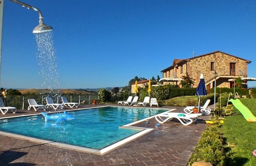 La 'granja' La Tuerca 'es una verdadera granja situada en un bello entorno, con vistas espectaculares de Volterra. La finca está rodeada por una finca de 100 hectáreas de fruta y cereales