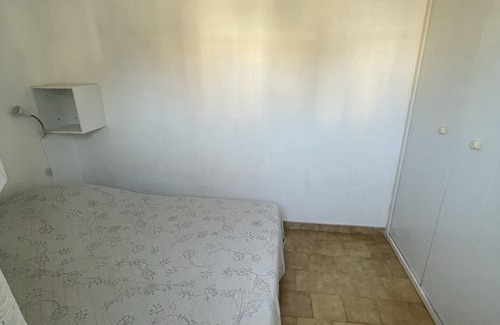 Cómodo apartamento con 1 dormitorio con 1 cama de 140, una cabina con 2 literas, 1 baño, un aseo, una cocina, una sala de estar con un sofá cama en 140, ventilador de techo, un patio de 10m2 y un aparcamiento privativo y libre (para la ciudad modelo de coche). Cruzando apartamento con orientación al sur.