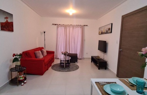 Un residencial tranquilo y con vigilancia 24h , con vistas al mar de las Américas. Estamos a 7 minutos del Aeropuerto Internacional De Las Américas y a 15 minutos de la Playa de Boca Chica. Hemos creado para ti un espacio higiénico y confortable con todos los electrodomésticos y utensilios necesarios para hacerte la vida más cómoda. Aire acondicionado, lavadora y secadora, microondas, licuadora, tostadora, exprimidor de naranjas, botiquín de primeros auxilios, áreas verdes, parque infantil dentro del recinto y cancha de baloncesto, parqueo privado y productos de primera necesidad para brindarte el mejor servicio.