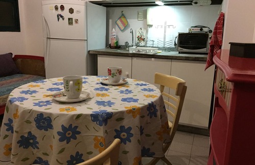 Monoambiente pequeño, para dos personas en Nueva Córdoba, (Córdoba, Argentina) con kichenette, baño y amplio balcón; sobre Av. Ambrisio Olmos, a 1 cuadra de la Ciudad Universitaria (U.N.C.), a 4 cuadras del Parque Las Tejas, cerca de los museos más importantes de Córdoba y de la vida nocturna (a 4 cuadras del Barrio Güemes, el barrio bohemio de la ciudad). En el último piso con ascensor, no llegan los ruidos de la calle por la noche.