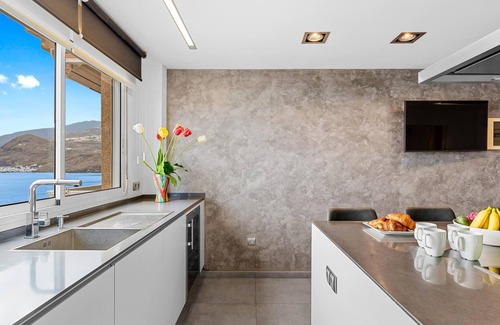 Este amplio y alegre espacio está diseñado para el relax y la diversión, con espectaculares vistas al mar y acceso directo a la terraza. Tanto si vas a cocinar, cenar o descansar, te sentirás como en casa.
