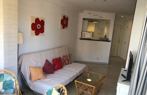 Estudio con una habitación, Recinto denominado Centro Internacional.Junto al Mar. Dispone de Jardines, Gran Piscinas Pistas de Tenis, Bares, Restaurante, Heladería, etc. El Estudio tiene todo lo necesario. Aire Acondicionado, Internet, Wifi, Televisión Satélite, con multitud de canales extranjeros, Productos de aseo, menaje de cocina, Ventilador, Horno, Microondas, Nevera, Batidora, Cafetera, Plancha, Sofá cama, Armarios, Baño completo, Lavadora etc. Situado Junto a un estupendo Paseo Marítimo, a su alrededor encuentras bares, supermercados como lidl , Mercadona o Dia, Parada de Bus y Taxi, etc . Para evitar molestias e inconvenientes, si es posible, por 40 €- 50 €, te recogemos en la Estación de Bus, Tren. o el Aeropuerto de Málaga y te llevamos hasta la misma puerta del Apartamento. Consultar antes, por favor. Gracias.
