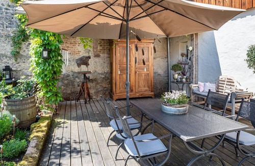 Aquí le espera un apartamento de vacaciones encantadoramente amueblado, que con sus elementos históricos de construcción le recuerda una época anterior y al mismo tiempo ha sido renovado con cariño. La estufa de azulejos y las vigas del techo proporcionan un ambiente acogedor. En el patio encontrará una hermosa zona de estar, que le invita a relajarse. Descubra también el hermoso jardín para relajarse allí con una copa de vino y un buen libro. WLAN, lavavajillas, cafetera, televisión, equipo de sterio están disponibles. Lavadora y secadora también están disponibles en la sala de calderas y se puede utilizar con placer.