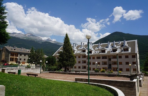 Apartamento La Espata situado en villanúa a pie de la montaña, con unas vistas espectaculares, en urbanización tranquila y familiar con piscina y zonas comunes, a tan solo 500 metros del centro del pueblo y de las zonas de ocio de este, como piscinas,parques,campo de futbol y zonas deportivas, muy próximo a la cueva de las Güixas. En planta baja, recién reformado de con estilo nordico, se distribuye en dos habitaciones, una doble y otra indivudial, la casa cuenta con un cuarto de baño completo con ducha, salón con cocina americana y salida a un balcón.