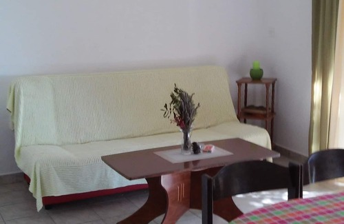 Apartamento puede recibir 6 huéspedes. Las camas están dispuestas en dormitorios que hay 2, y en sala de estar, dentro de 50m2. Los huéspedes disponen de su propia terraza para disfrutar de las cálidas noches de verano. El apartamento ofrece vistas al mar. Está permitido preparar alimentos en una parrilla comunitaria. Esta unidad de alojamiento acepta mascotas sin coste adicional.