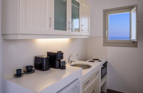 En Ano Meria, el apartamento vacacional Seascape Suite 5 ofrece unas excelentes vistas al mar. La propiedad de 30 m² consta de una sala de estar, 1 dormitorio y 1 baño, por lo que puede alojar a 2 personas. Los servicios adicionales incluyen Wi-Fi de alta velocidad (apto para videollamadas), televisión y aire acondicionado. Este alquiler de vacaciones cuenta con un balcón privado para su relajación por la noche.