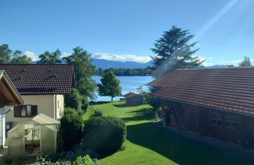 Nuestro encantador, acogedor y confortable apartamento de vacaciones de 73 m² en estilo rural con su propia zona de baño y la vista más hermosa de los Alpes. El apartamento vacacional dispone de 1 dormitorio + sofá cama, 1 salón con estufa de azulejos y sistema de TV. 1 cocina equipada con zona de comedor, lavavajillas, microondas y cafetera, cuarto de baño con ducha, bañera esquinera y WC. Cocina totalmente equipada, con vistas al lago y al panorama alpino. El apartamento vacacional está equipado con suelos de madera y baldosas, todos los techos son de madera. TV y WiFi disponibles La ropa de cama, las toallas y los paños de cocina se proporcionan de forma gratuita. Nuestra zona de baño interna lo invita a nadar, relajarse y descansar.