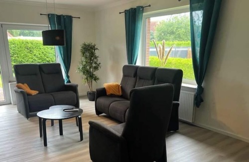2-family house, renovated in 2023. On the outskirts, 850 m from the centre of Grossheide, 19 km from the sea, 19 km from the beach. Private: large garden with lawn. In the house: storage room for bicycles, central heating system. Parking at the house. Supermarket 700 m, restaurant 800 m, bakery 700 m, bus stop 500 m, railway station 13 km, sandy beach 19 km, outdoor swimming pool 5 km, indoor swimming pool 5 km. Golf course (9 hole) 8 km, tennis 4.1 km, minigolf 4.1 km.