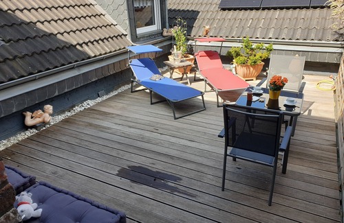 Apartment with roof terrace in the park at Wippmannshof Se encuentra en Alstaden. Apartment with roof terrace in the park at Wippmannshof ofrece alojamiento, con Lavandería, Vista al océano, Balcón/Terraza, Entre otras comodidades. Estas características Condominio Lavandería, Vista al océano, Balcón/Terraza, Para que su estadía sea cómoda.