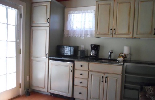 La casa independiente es un alquiler por separado, que se puede alquilar por un cargo adicional por semana o por un período más corto, con una estadía mínima de dos noches. Estamos encantados de ofrecer este espacio a nuestros huéspedes que alquilan la casa principal, para ser utilizados por familias que desean traer a uno o dos abuelos, o por parejas que disfrutan de vacacionar juntas, pero que también quieren respetar el espacio de los demás. La cabaña ofrece una cama queen, una pequeña sala de estar con microondas, refrigerador estilo dormitorio, TV y un baño completo con ducha. Hay un porche con una mesa de patio para dos. La tarifa de cabaña es de $ 90 / noche para una estadía mínima de 2 noches, o $ 600 / semana durante la temporada de verano. Por favor, póngase en contacto con nosotros para tarifas de temporada baja por semana. Las tarifas diarias siguen siendo las mismas. Tenga en cuenta que la cabaña no está disponible como un alquiler separado y primario.