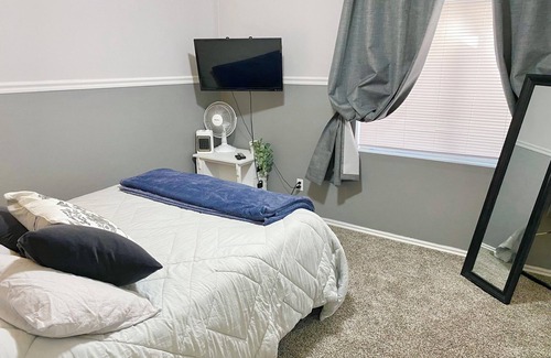 This Airbnb is the perfect place for a comfortable and affordable stay. It’s located in Eagle Mountain (City Center), It has a private entrance, 2 bedrooms, 1 bathroom, a living room that has a kitchenette and even a laundry room! We have equipped it with many items for small children that are stored, so that you can use the ones you want and not worry about them taking up space if you don’t need them. On top of all that, you are welcome to bring your pets without any additional fees!