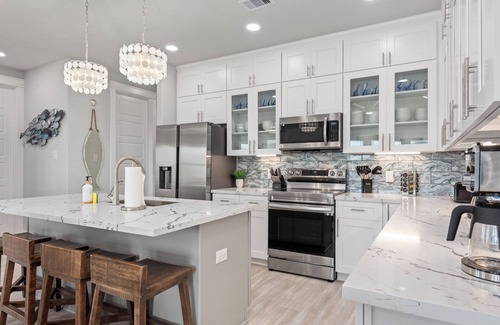 Este alojamiento de 4 dormitorios y 3 baños cuenta con una sala de estar, un sofá cama, una zona para barbacoas y aire acondicionado. El cuarto de baño incluye un secador de pelo y toallas. La cocina está equipada con horno, placa de cocina y frigorífico, además de cafetera y tetera, máquina de hielo y microondas. Y no tendrás que llevarte ropa de más, porque podrás aprovechar la lavadora y la secadora.