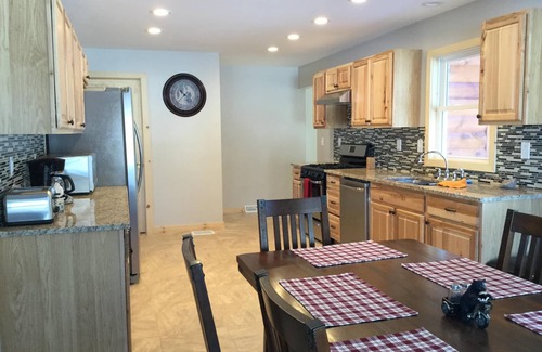 ¡¡Cuatro ruedas!!... ven y quédate!Los clientes están seguros de disfrutar de unas vacaciones memorables en esta cabina totalmente amueblado, 4 dormitorios / 2 baños. El dormitorio principal tiene una cama king-size, 2 habitaciones con camas tamaño queen, y la última habitación con 2 literas con camas tamaño queen en la parte inferior y dos camas individuales de tamaño en la parte superior cómoda para dormir 14 personas. La cocina está totalmente equipada y lista para preparar sus comidas favoritas. También se incluye televisión e Internet. En Douglas Creek. Este es el lugar perfecto para alejarse de todo y relajarse con la familia en el senderismo al aire libre, la pesca, motos de nieve y cuatro ruedas en los meses de verano, Four wheeling en la gran área de tirolina, ubicada en la ruta C5A. Al otro lado de la calle de la unidad en la sala de cine y cerca de todos los ementities. La propiedad está exactamente a cuatro millas al norte del motel borde. Además, la estación de esquí de nieve está a pocos minutos.