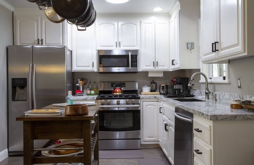 Es una casa cómoda de 2 niveles en una ubicación perfecta (a 10 minutos de la Plaza y cerca de las bodegas), con una hermosa vista desde la terraza, un patio trasero con una fogata y un vecindario encantador para pasear. Te quedarás en la casa principal y yo me quedaré en el estudio de abajo que está conectado por escaleras. Las escaleras están cerradas para que tenga su total privacidad. Hay 3 habitaciones con camas queen size, 1 habitación con un futón completo, 2 baños completos, una cocina completamente equipada, Wifi, TV pero sin cable, piano, W&D en el garaje y mucho estacionamiento. (2 autos en el espacio superior a la derecha de mi entrada y 2 archivos estacionados en el lado izquierdo de mi entrada, frente a los botes de basura). También hay estacionamiento adicional en la calle, pero prefiero que no se estacione frente a las casas de mis vecinos. Mi gato, Paris, vive conmigo en el estudio debajo de mi casa.