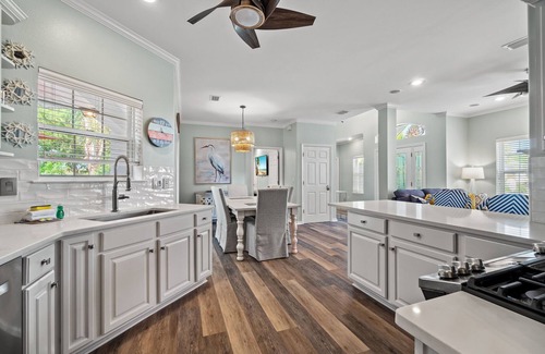 A esta casa de vacaciones para familias tan agradable no le faltan opciones para pasarlo en grande, como, por ejemplo, kayak y golf en las instalaciones. El alojamiento dispone de garaje. Además, estarás a 2min en coche de Miramar Beach y a 5min en coche de Parque James Lee.