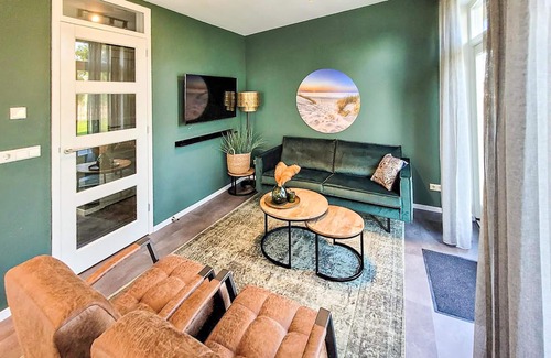 Esta casa de vacaciones sostenible con un hermoso jardín es adecuada para toda la familia. Comience el día con un delicioso desayuno en la terraza frente a la casa con una hermosa vista del parque de nueva creación. La cocina está amueblada al más alto nivel y equipada con todas las comodidades. Junto a la cocina se encuentra el acogedor salón con zona de estar, Smart TV y puertas francesas al exterior. Póngase cómodo aquí. Las cómodas habitaciones le ofrecen privacidad y tranquilidad por la noche. Las habitaciones también están equipadas con Smart TV para que los niños puedan ver su programa favorito sin ser molestados.